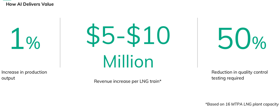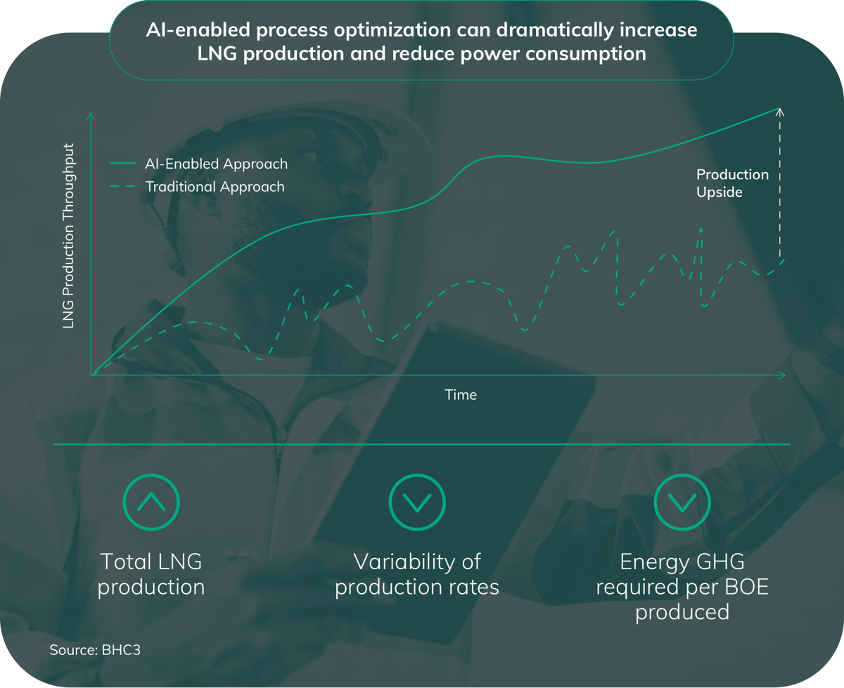 AI combined with domain knowledge can offer significant opportunity across the liquefaction process, delivering increased output, reduced variability in production rates and lower emissions intensity.