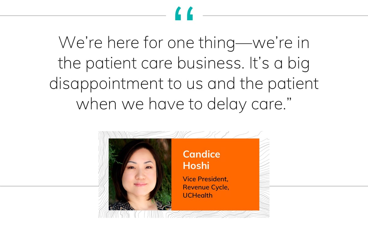 The challenge is top of mind for Candice Hoshi, Vice President, Revenue Cycle for UCHealth, a Colorado-based nonprofit integrated health system with 12 hospitals and more than 150 UCHealth-owned and -affiliated clinics serving patients in Colorado, Wyoming and Nebraska.