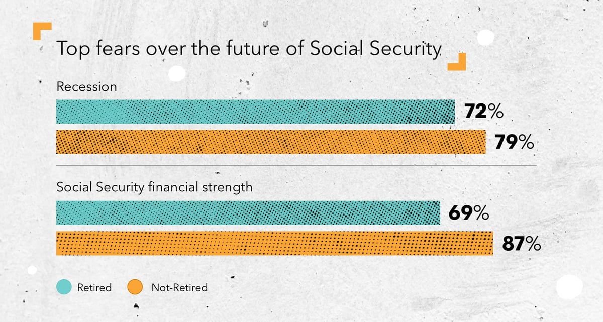 Athene recently conducted a survey with Kiplinger on the impact of guaranteed income in retirement. Fears about a US recession and uncertainty over the future of Social Security were respondents’ top two financial concerns. Seventy-five percent of survey respondents said they would like to have more guaranteed income in retirement than they already have or expect to have. Most (57%) said more guaranteed income would ease concerns about running out of money. Over one-third say more would ease volatility concerns.