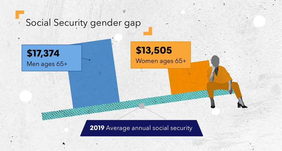 In 2019, the average annual Social Security income received by women 65 years and older was $13,505, compared to $17,374 for men. Living, on average, four years longer than men, women may need to save more throughout their lifetime to accommodate longer periods in retirement, according to the Pensions Policy Institute.