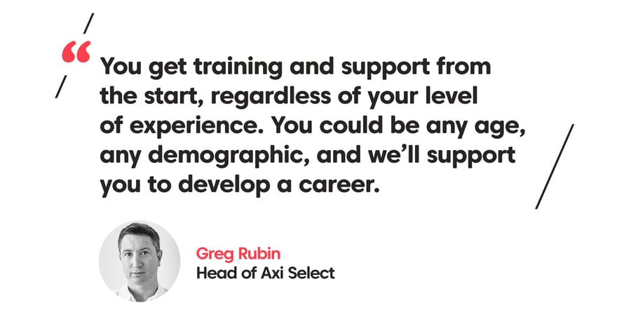 “You get training and support from the start, regardless of your level of experience,” says Greg Rubin, Head of Axi Select, a funding program offered by Axi. “You could be any age, any demographic, and we’ll support you to develop a career.”