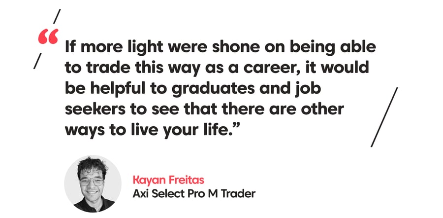 Kayan Freitas, 22, a chemistry graduate from São Paulo, is one of the traders to reach Axi Select’s top tier. He joined the program with $550 in personal capital, and in just over a year he was trading with $1 million of allocated funds.