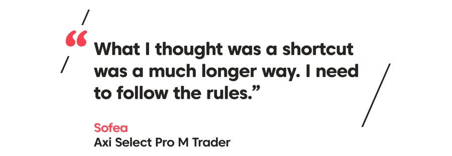 For her second try, Sofea found herself chasing losses by increasing lot sizes beyond those recommended by her trading system, leading to another large drawdown. “What I thought was a shortcut was a much longer way,” she says. For her third attempt, she acknowledged that “I need to follow the rules.” She was rewarded by securing $1 million in funding.