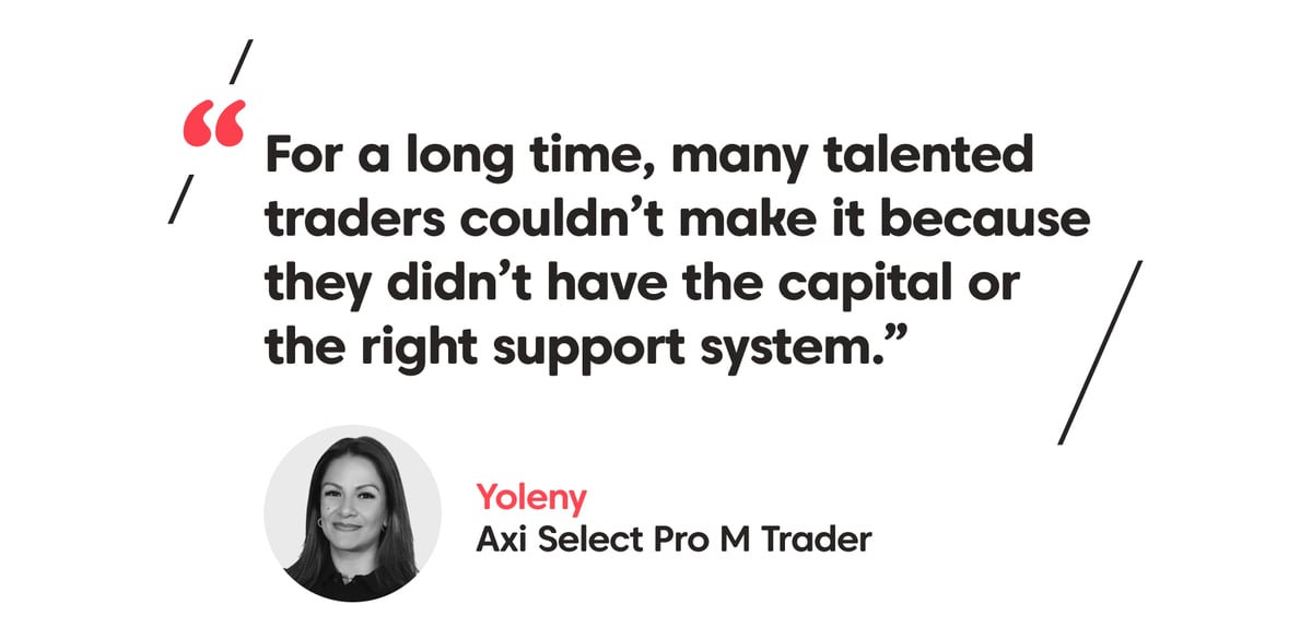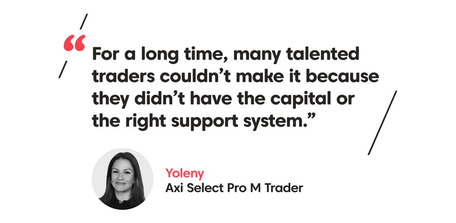 The support of other traders in whom she shares a WhatsApp group, has been invaluable for Yoleny. Trading can be isolating, but Axi Select offers more than a simple brokerage platform or funded program. Weekly webinars help traders deepen their knowledge, while trading rooms enable them to talk strategy and share charts with more experienced traders. Camaraderie and friendships can follow.