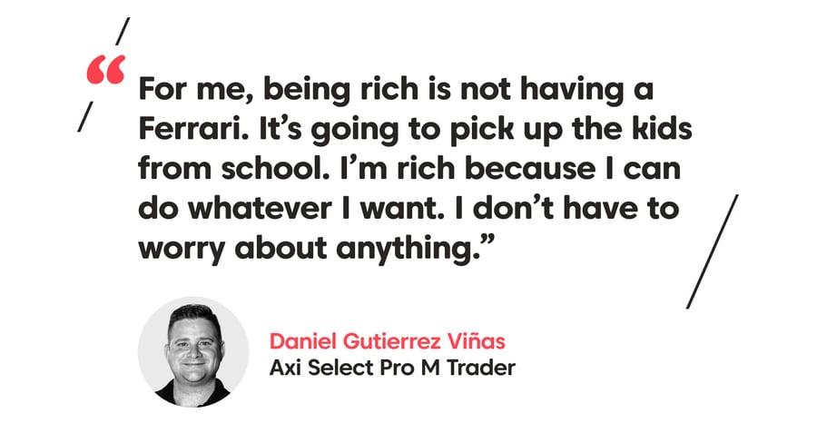 Gutierrez agrees. He advises traders who have yet to reach the Pro M stage to keep a second source of income. Trading income is variable, and a day job can help traders ride out any difficult months. “With Axi, you can work little by little, and adapt trading to your life,” he says, advising traders to only consider trading full-time once they reach the advanced Pro-level stages.