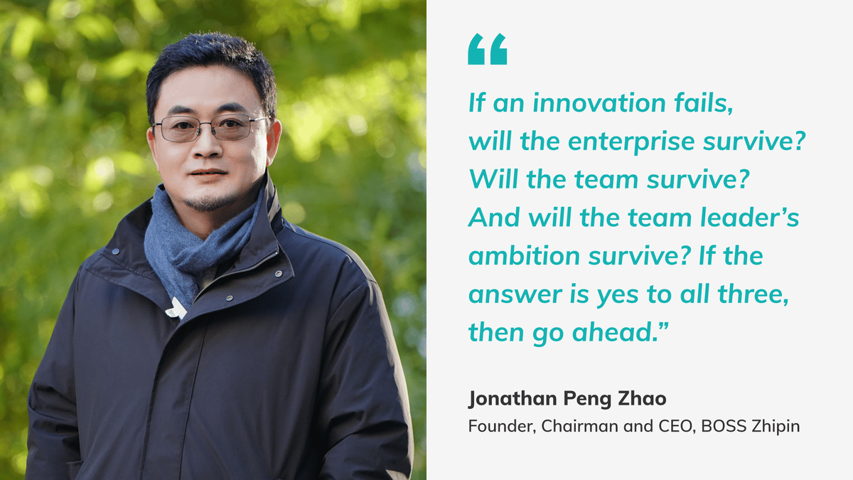 “If an innovation fails, will the enterprise survive? Will the team survive? And will the team leader’s ambition survive? If the answer is yes to all three, then go ahead,” says Zhao.