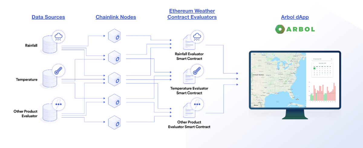 Parametric crop insurance that helps farmers secure economic protection is already available, with some providers offering it to anybody with a smartphone and an internet connection. Some of these insurers use Chainlink to help create insurance contracts based on weather data from the US National Oceanic and Atmospheric Administration (NOAA). For instance, a farmer could receive a payout if data from the oracle network indicated that their region received less than 20 inches of rain over a two-month period.