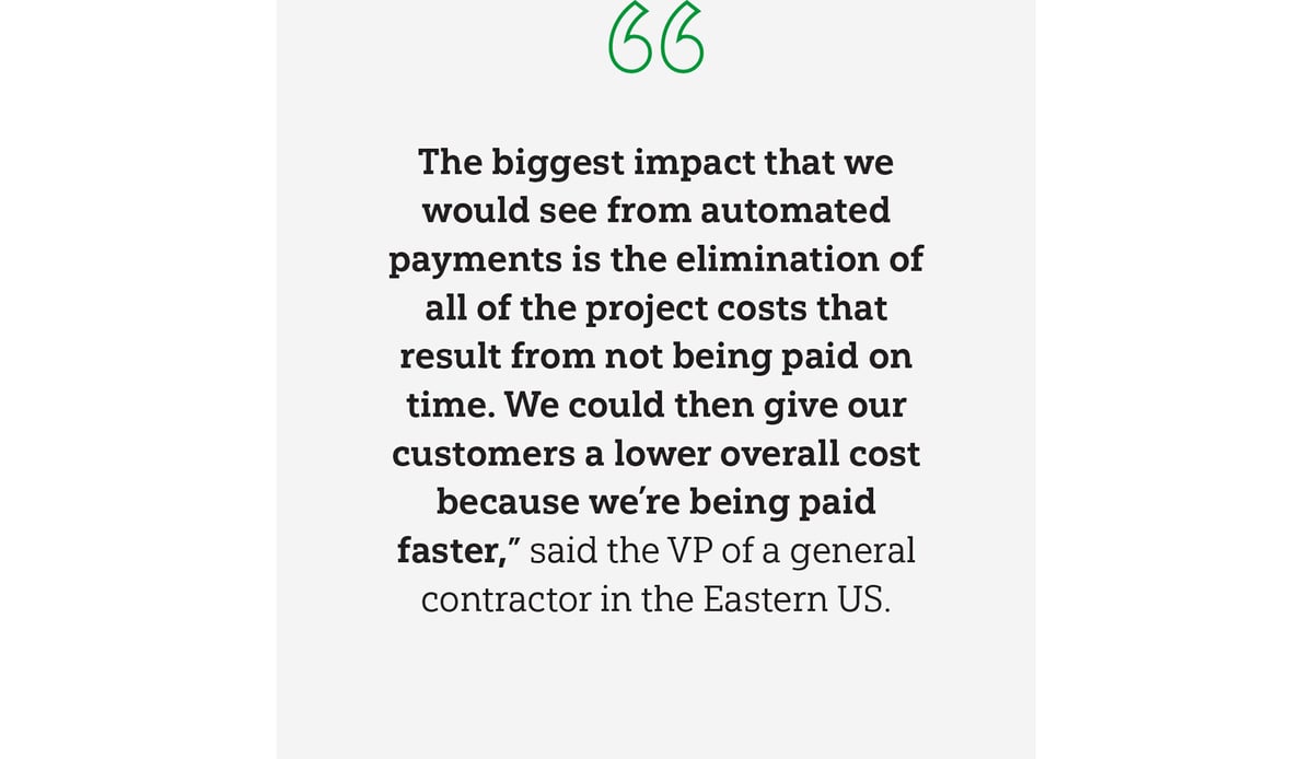 When your software can account for every detail of the job, you can analyze costs comprehensively to gain visibility into cash flow, make more informed on-the-go financial decisions and see how job site conditions affect your margin. Automated payments need to be part of a larger process analysis to ensure that your payments are accurate and on time.