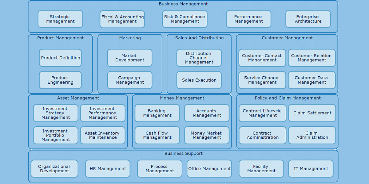 A capability map is drawn up in clear language, without technological jargon, so that non-IT stakeholders can easily understand it. A well-understood capability map quickly becomes the backdrop for many different discussions. For example, the capability map can add value to your decision-making by showing the following: