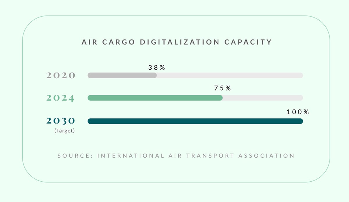 In the global air freight market, air cargo digitalization surged from 38% in 2020 to 75% in 2024, according to IATA, with the industry targeting 100% by 2030. The shift reflects a broader structural change: businesses now expect the same visibility, flexibility and speed from cargo that consumers expect from e-commerce.