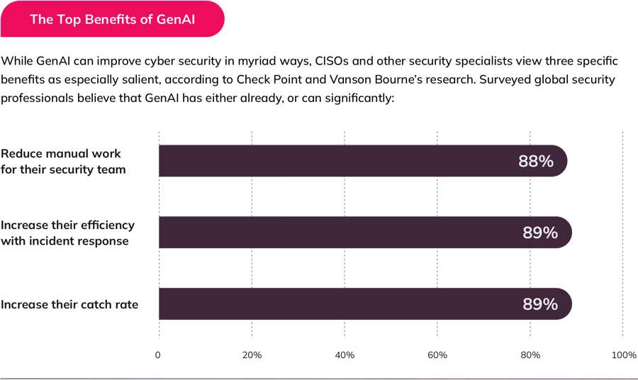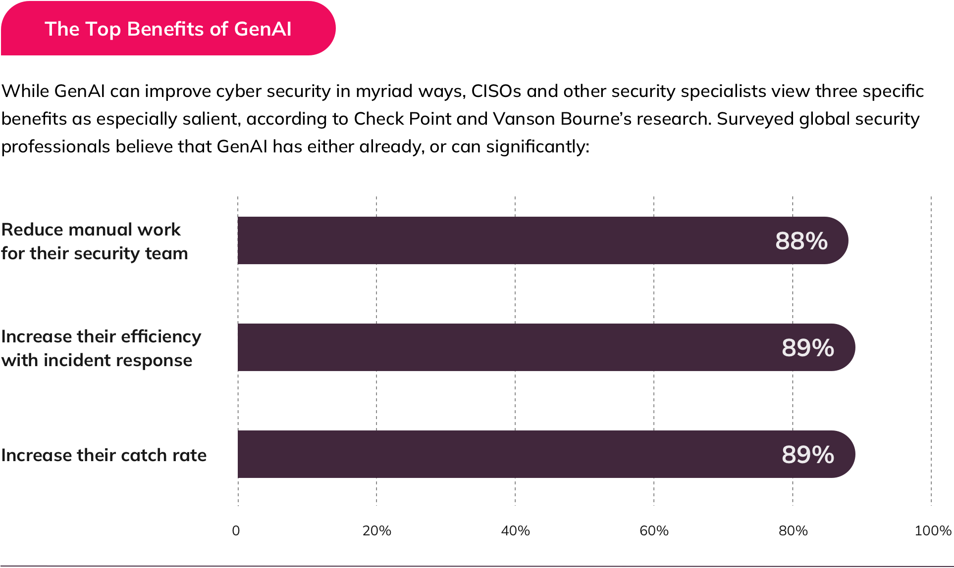 GenAI tools (such as ChatGPT) that can instantly generate text, images, video, 3D models and other creations are fueling new opportunities in marketing, data analysis, coding and other vital areas across nearly every industry. They’re also spurring evolution in tech-heavy sectors, with cyber security a leading example. A 2024 survey of global security professionals1 found that nearly all (about 99%) reported that their organizations currently use AI-powered tools in their security systems, with about 76% saying they’ve used GenAI in their security setup for more than a year.
