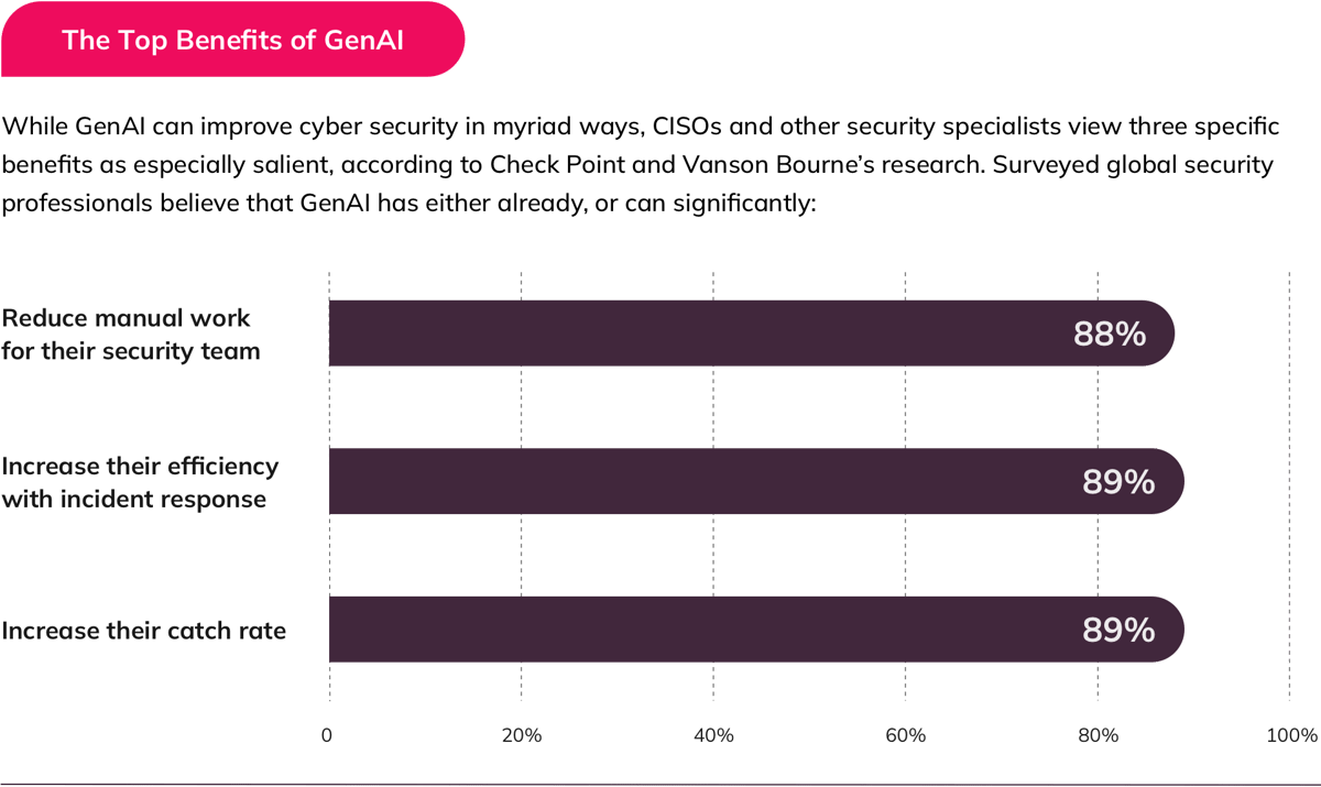 GenAI is quickly escalating into a multi-sided threat. On one front, it’s given bad actors a powerful new weapon to launch ever more sophisticated cyber attacks. “Before generative AI, cyber criminals needed to have both the intent and advanced tech capabilities in order to execute highly effective attacks,” says Carter. “Now, they really just need the intent.”