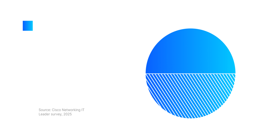 AI use is becoming inseparable from modern work, fostering a sense of urgency to keep up. In a 2025 McKinsey survey, nearly 80% of businesses reported using AI in their operational workflows, up from 55% in 2023. As enterprises augment workforces with AI-driven agents, applications, robotics and humanoids, enterprise productivity and throughput capacity significantly increase. This drives more traffic than traditional networks were designed to handle.