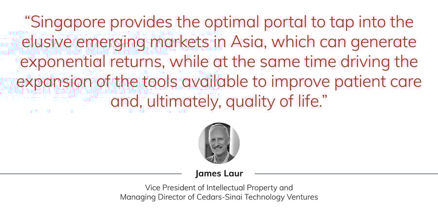 “Singapore is at the perfect intersection of breakthrough innovation, world-class research and talent development. In addition, Singapore already has a strong enabling layer established in the ecosystem. For example, working with partners like A*STAR, which bridges the gap between academia and industry, greatly expands the funnel for what we are able to access and reduces the time to connect with companies with innovative solutions in our areas of interest,” says Nirdesh Gupta, managing director of Cedars-Sinai Technology Ventures.