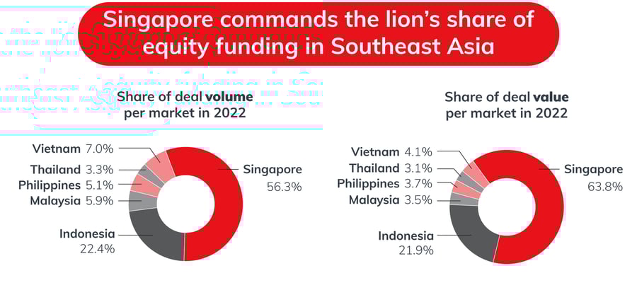 And investors are certainly choosing Singapore. In 2022, Singapore topped the region as the leading destination for venture capital investments, attracting more than half the total deal volume and deal value recorded across the six largest ASEAN economies.