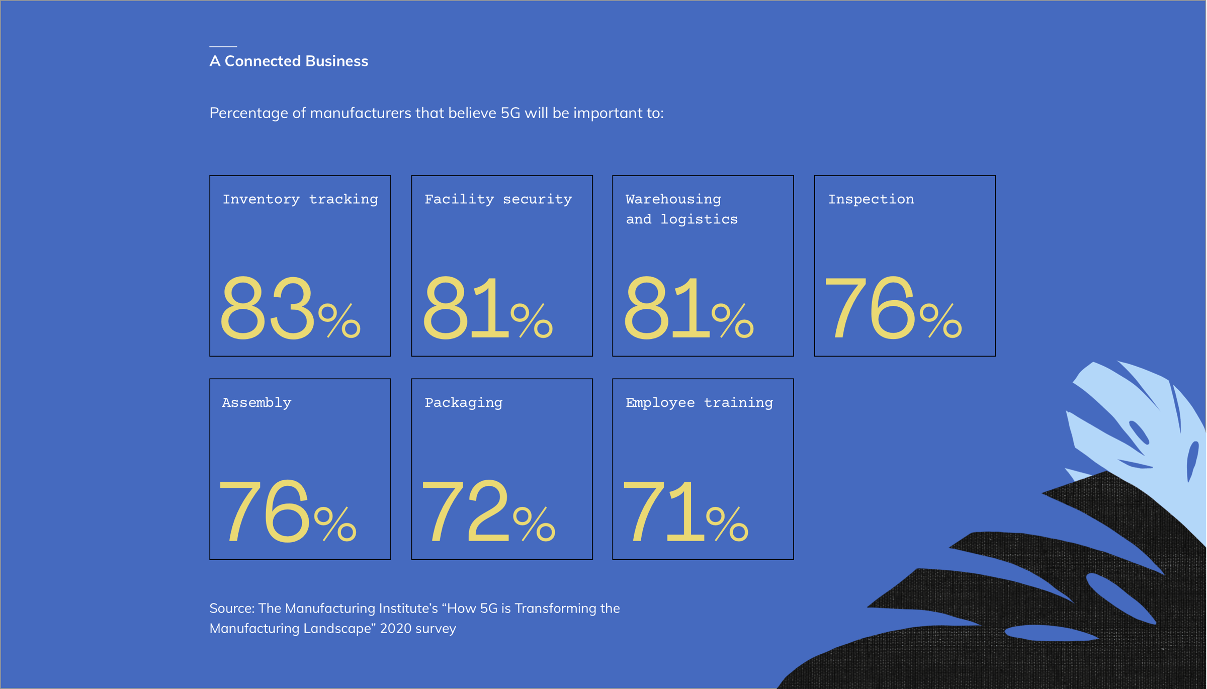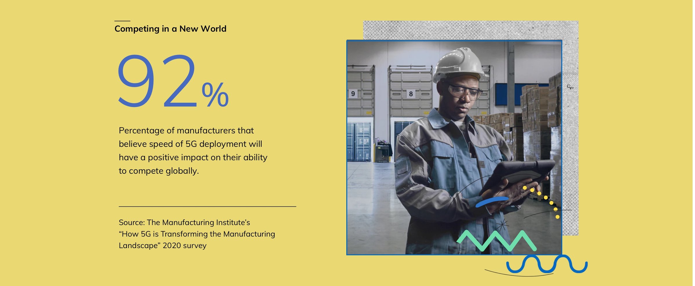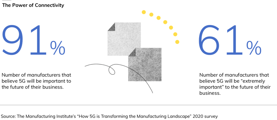 For businesses, these advantages are a catalyst for innovation. In fact, three-fifths of manufacturers believe that 5G will be “extremely important” to their business, according to a survey by the Manufacturing Institute.