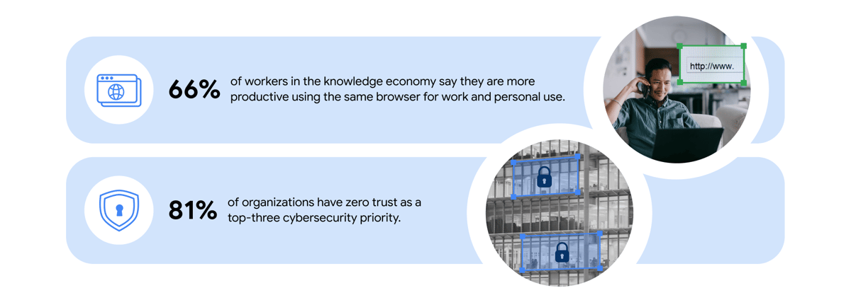 “Before, my desktop was my endpoint; it was where I did all my work,” says Lopez. "The browser used to be just a place to look something up, to get access to data. Now, it is not just a portal to the internet, but the new endpoint where almost every high-value activity or interaction in the enterprise takes place. I do 100% of my day in a browser now.”