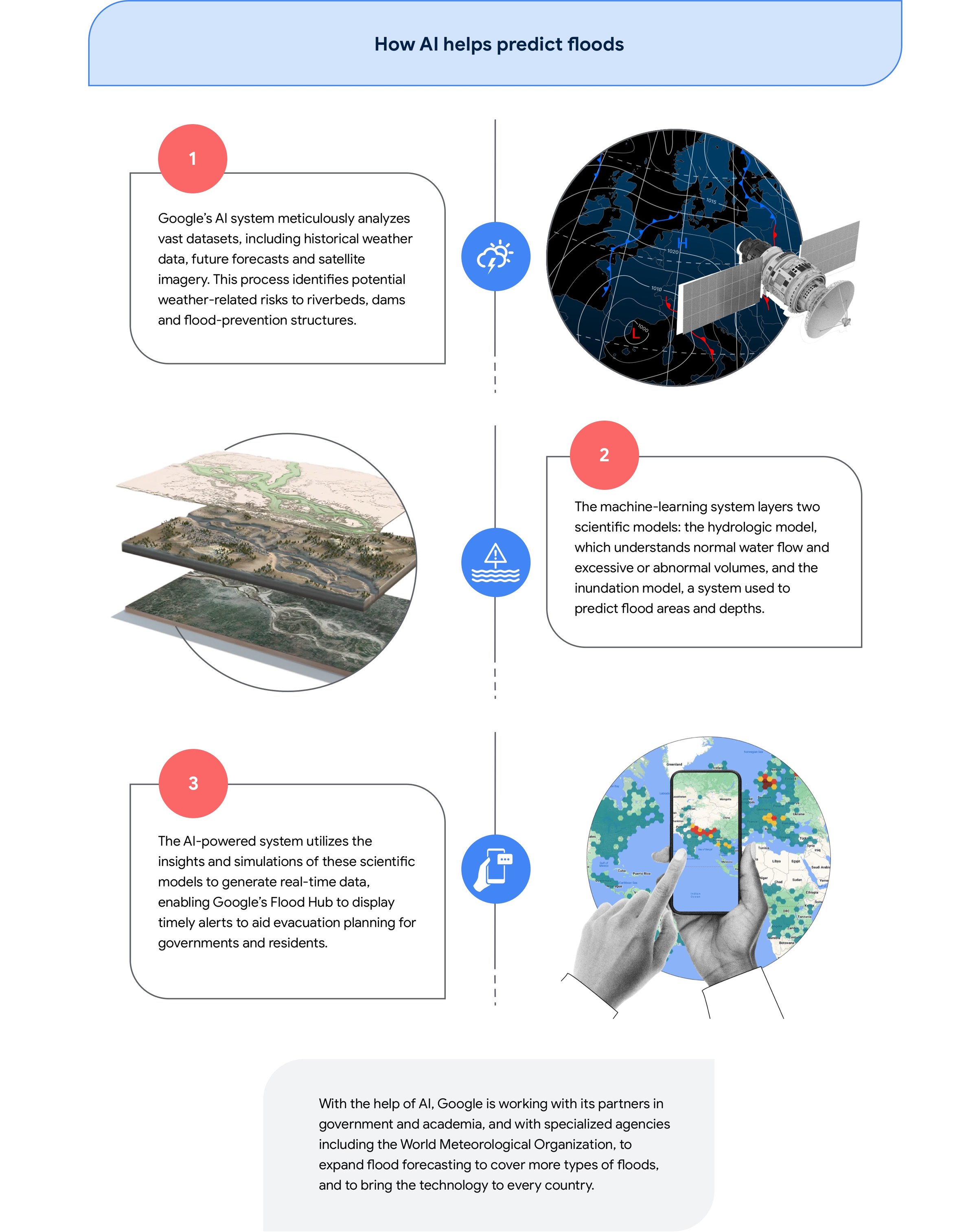 In 2022, Google launched the Flood Hub, aimed at providing useful flood information to people, governments and aid organizations worldwide so they can take appropriate action.