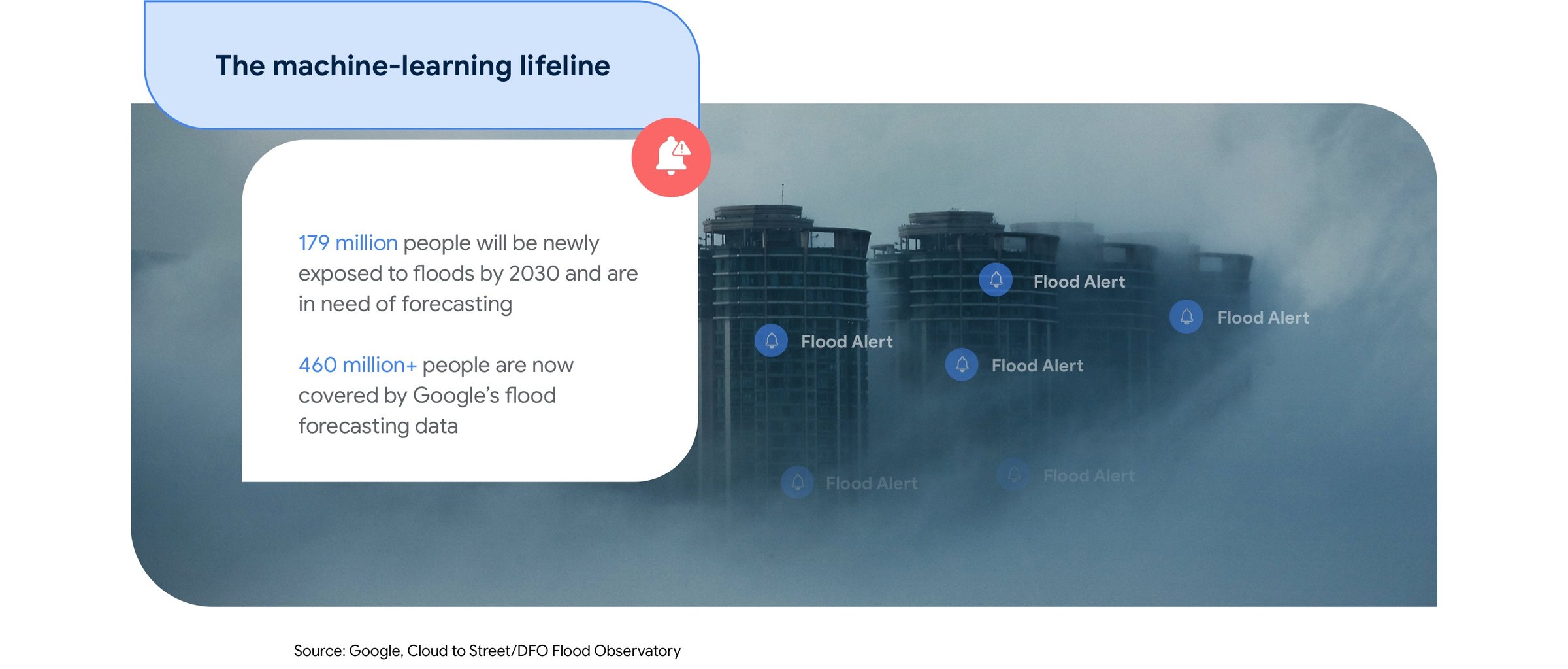 In 2021, Google sent 115 million flood alert notifications to 23 million people through Search and Maps—everyday tools with which the average smartphone user is already fluent.