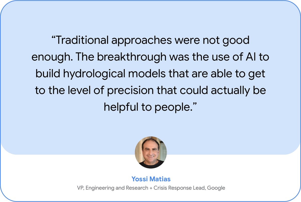 The development of this model is a major breakthrough in the use of AI to mitigate the impact of natural disasters and helped Google bring Flood Hub to more than 80 countries in a matter of months.