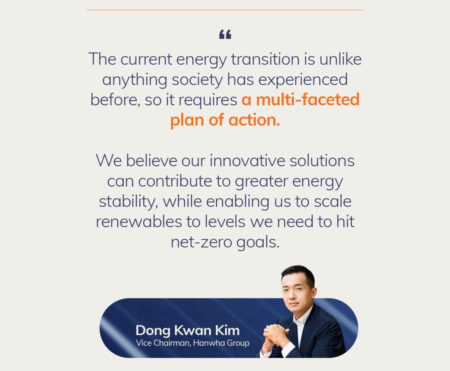 A global energy solutions provider, Hanwha is contributing to the energy transition by combining its world-class energy production, storage, and transportation know-how with its proven expertise in energy sources and materials.