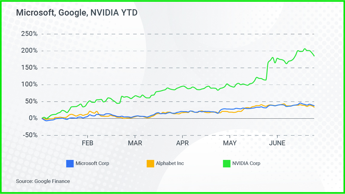 Companies with significant exposure to AI have been outperforming the market by a significant margin.