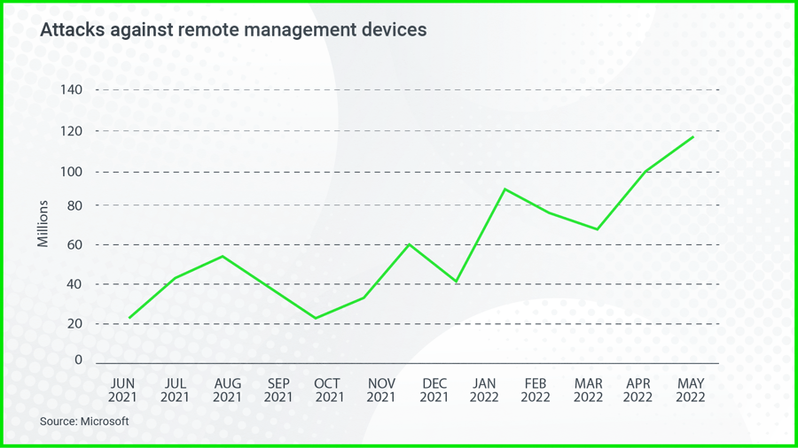 According to Microsoft data, the number of attacks against remote management devices has increased sixfold since June 2021.