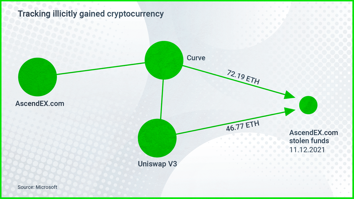 Using the cryptocurrency investigative tool Chainalysis, Microsoft’s Digital Crimes Unit discovered the AcendEX hackers swapped their stolen funds at a smaller DEX called Curve in addition to Uniswap.