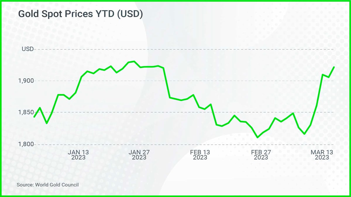 The price of gold has surged in 2023, fuelled by uncertainty about the global banking system, coupled with ongoing inflationary pressures.