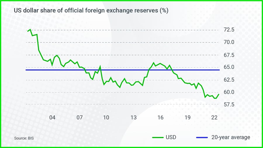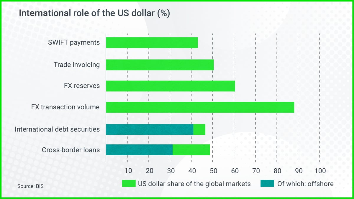 According to Alex Holmes from Oxford Economics, the US dollar has an intrinsic role in the modern financial system because over 90% of currency transactions still involve the US dollar.