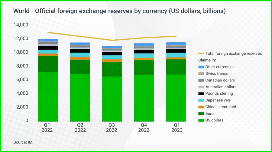 The US dollar is also still the most reliable store of value, with countries holding large volumes of USD as liquid cash-like securities.
