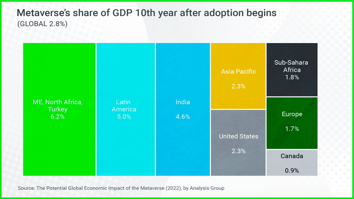 Similar to the mass adoption of the internet, the countries that stand to benefit most from the proliferation of the Metaverse are developing countries.