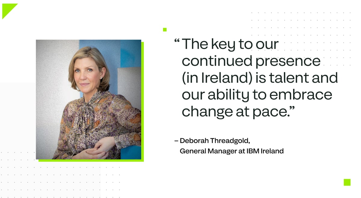 Deborah Threadgold, General Manager at IBM Ireland, is clear about the chief reason for the firm’s enduring relationship with the country. “The key to our continued presence is talent and our ability to embrace change at pace,” she says.