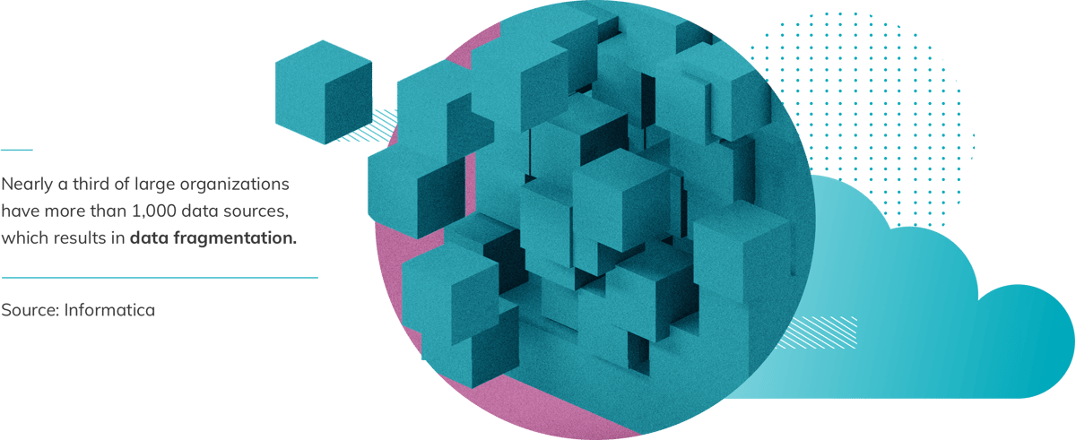 Walia says that many companies’ digitalization efforts come up short because of a failure to do this, and that nearly a third of large organizations have more than 1,000 data sources, which results in data fragmentation.