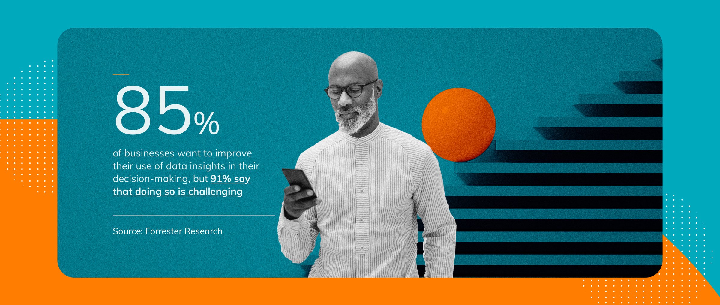 It’s not that companies don’t realize the importance of data. According to a report by Forrester Research, 85% of businesses want to improve their use of data insights in their decision-making, but 91% say that doing so is challenging. The result? Firms make fewer than half of their decisions based on quantitative information as opposed to gut feeling, experience or opinion, according to the report.