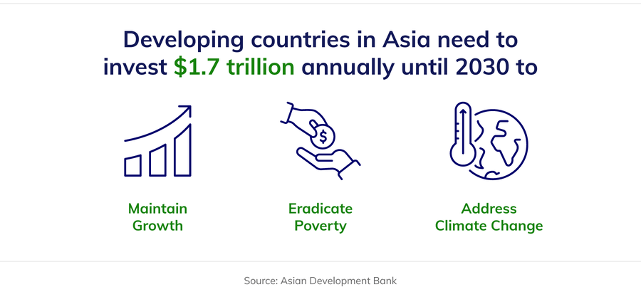 From roads and bridges to water and energy, the demand for new infrastructure across Asia is surging. This heightened demand is being driven by the region’s growing and rapidly urbanizing population, and the need to spur economic development, and by the effects of climate change.