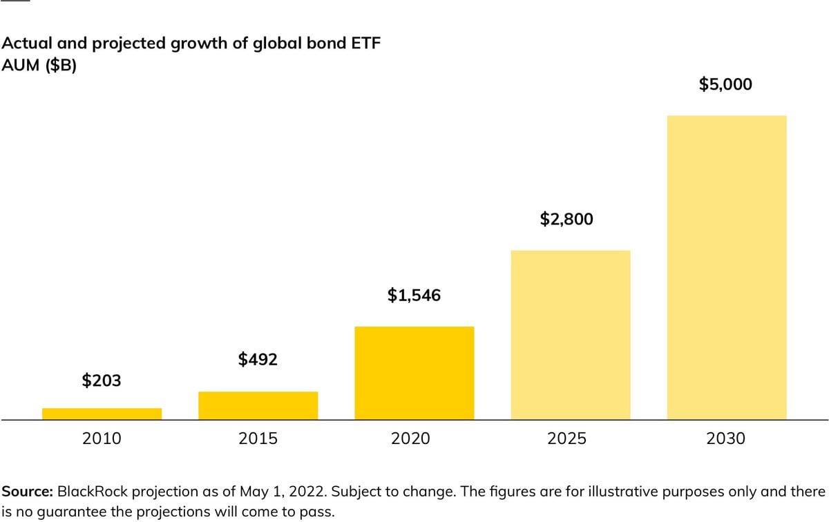 It was a point of no return. A movement that started with four iShares fixed income ETFs has grown into an industry with $1.7 trillion in assets under management (AUM). Now, according to iShares, the global fixed income ETF industry is poised to reach $2 trillion in 2023 and projected to reach $5 trillion by the end of 2030.