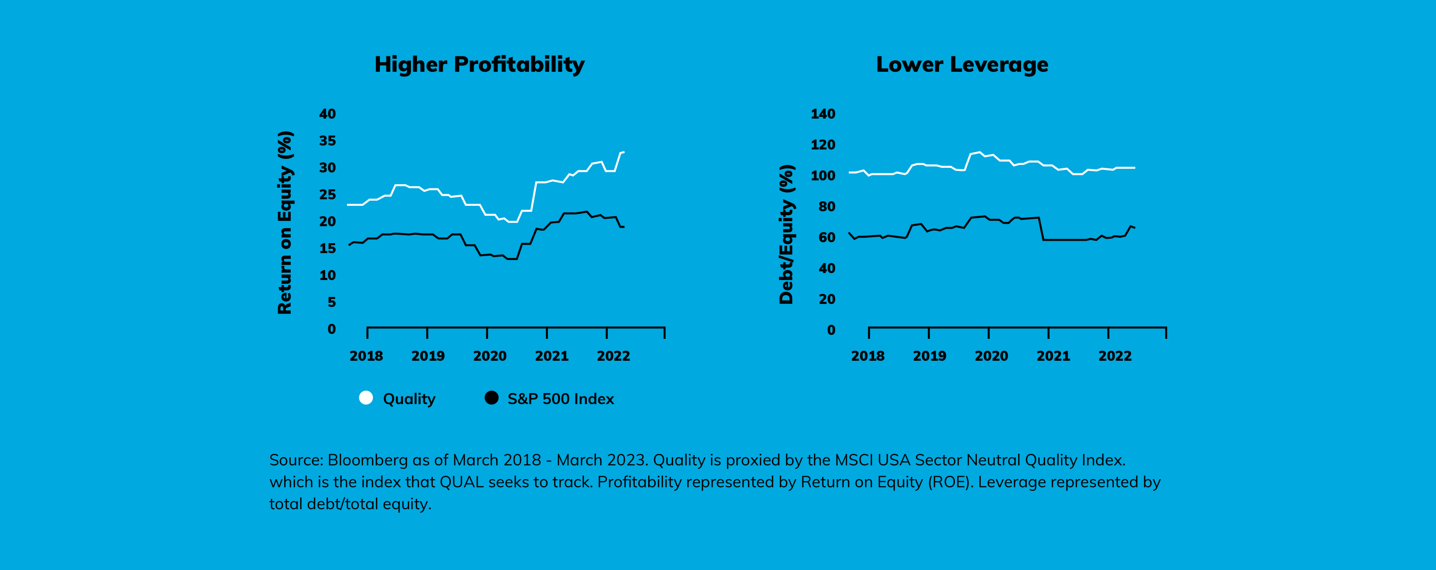 In anticipation of periods of economic slowdown, bond investors may move into higher quality companies, reasoning that they may hold up better in a market downturn. Equity investors can follow the lead of their fixed income counterparts, adding exposure to higher quality stocks in an attempt to add resilience to their portfolios.