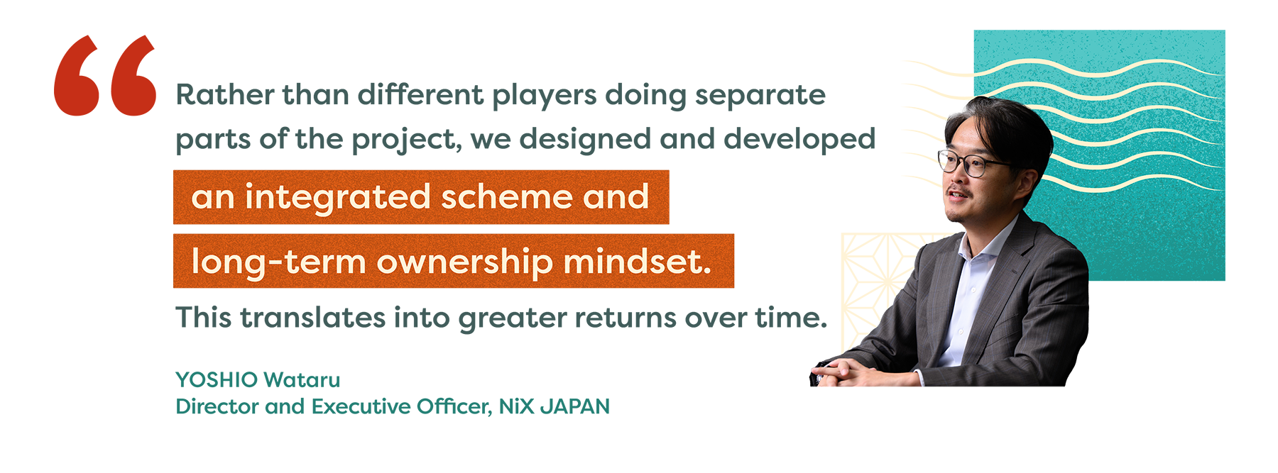 “Rather than different players doing separate parts of the project, we designed and developed an integrated scheme and long-term mindset as an owner. This translates into greater returns over time,” says Yoshio.