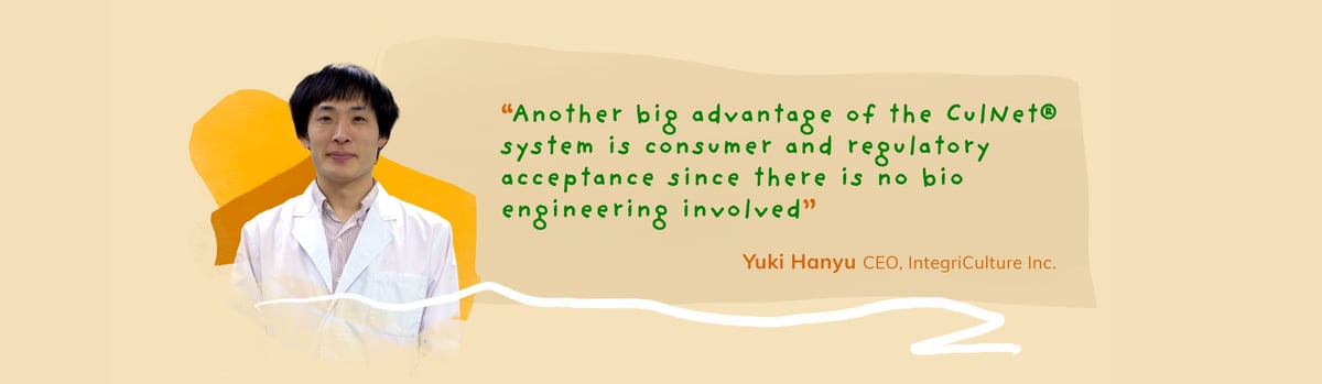 “Another big advantage of the CulNet® system is consumer and regulatory acceptance since there is no bio engineering involved,” explains Hanyu. “Most cultured food companies treat their media formulas as top-secret IP, but with CulNet®, users choose the cells in their feeder bioreactors and therefore own the formula themselves. The IP sits with the users, not with us.”