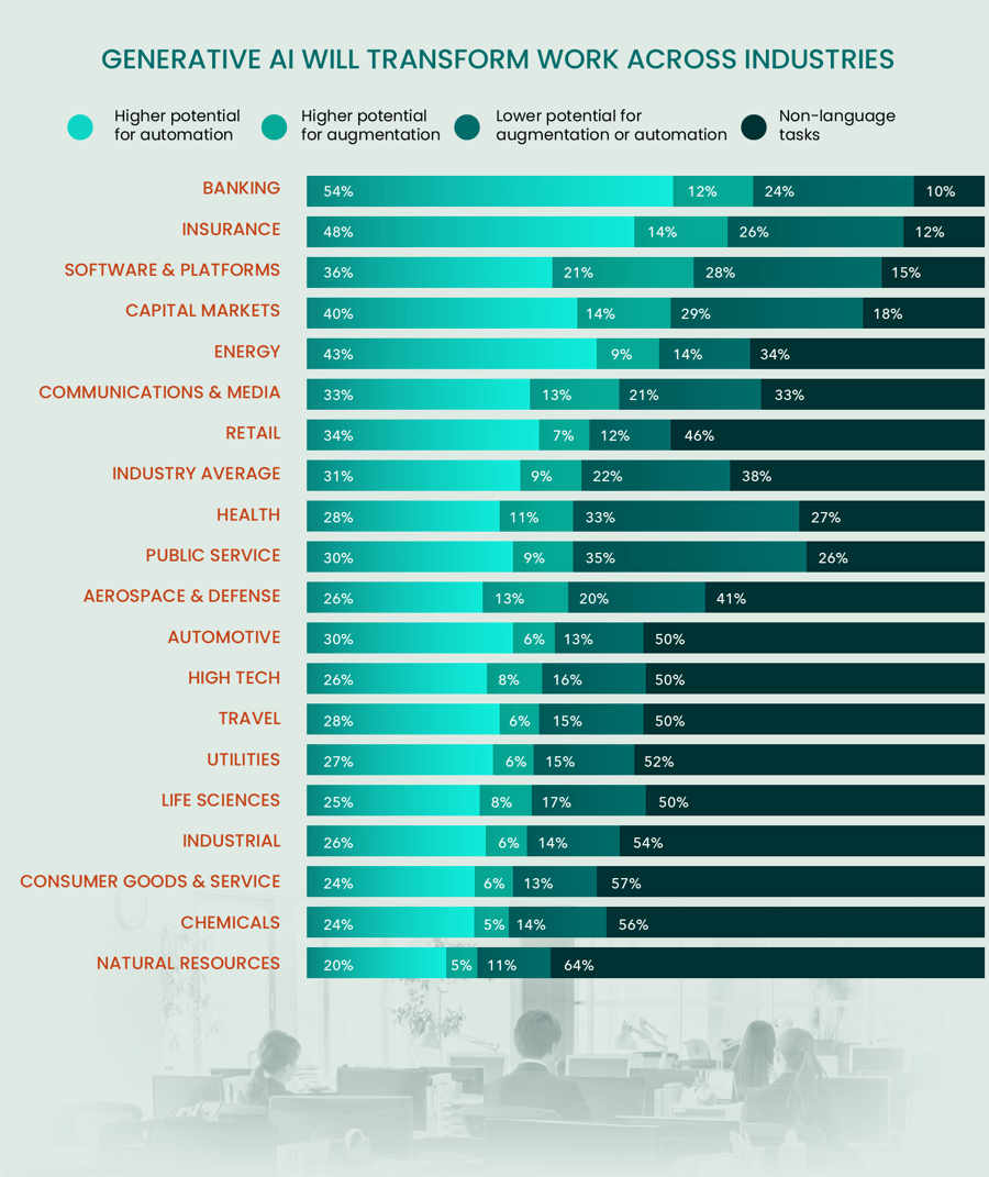 AI-powered robots could help cover labor shortfalls, ushering in the next wave of automation. Estimates from Goldman Sachs suggest that Generative AI could replace up to 300 million jobs globally.9 Job losses will be felt across a broad spectrum of professions, leaving several industries to cope with accelerating workforce changes. Thus companies embracing AI must upskill and create new opportunities for potentially displaced workers.