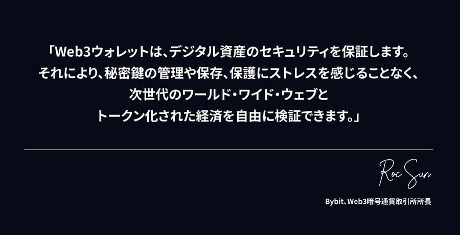 また、Bybit Walletのように、簡単に使用でき、堅牢なセキュリティを念頭に構築されたウォレットを選ぶことが重要です。このウォレットは、暗号通貨ユーザーが夢や自由を実現できるようにするというBybitの精神に基づき構築されているとSun氏は言います。