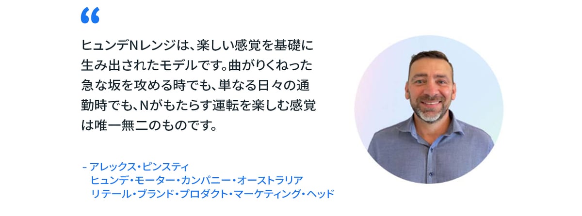 ヒョンデ・モーター・カンパニー・オーストラリアのリテール・ブランド・プロダクト・マーケティング・ヘッドであるアレックス・ピンスティ氏は次のように述べています。「ヒョンデNレンジは、楽しい感覚を基礎に生み出されたモデルです。曲がりくねった急な坂を攻める時でも、単なる日々の通勤時でも、Nがもたらす運転を楽しむ感覚は唯一無二のものです。今回のARキャンペーンは、Nをデジタルで運転するという直感的な体験を、手軽かつ魅力的な方法で実現することで、ヒョンデブランドの遊び心とパフォーマンス志向の面を示すまたとない機会となりました。」