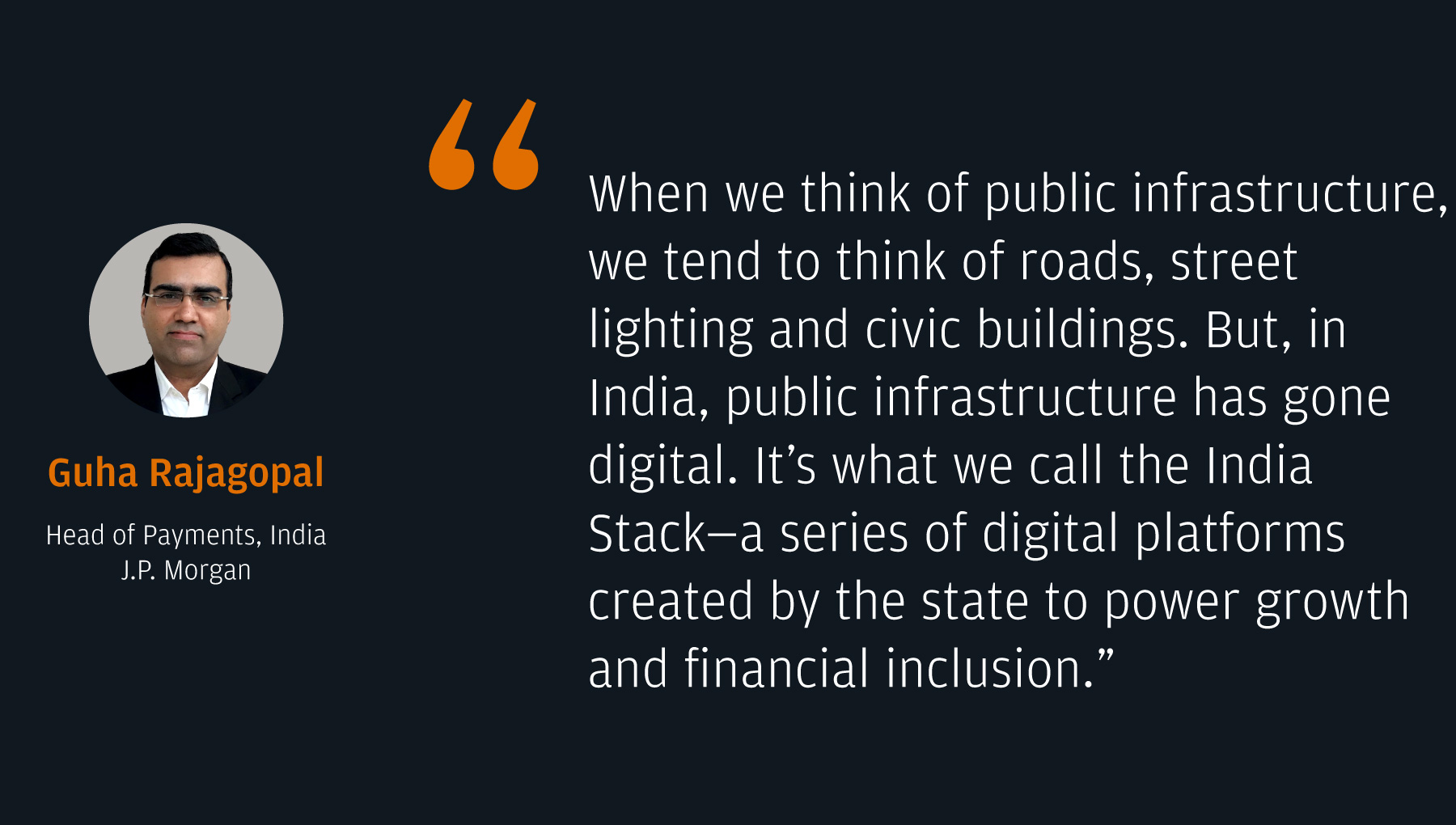 Experts like J.P. Morgan Payments help clients overcome that complexity by serving as a single point of contact for global corporates in India, whether for domestic collections, liquidity management, lending, merchant services or cross-border solutions. Ultimately, as India's digital infrastructure stack expands beyond its borders while transforming the domestic economy, companies operating in India will need a reliable payments partner to help navigate and capitalize on the opportunities offered by this evolving and dynamic market.