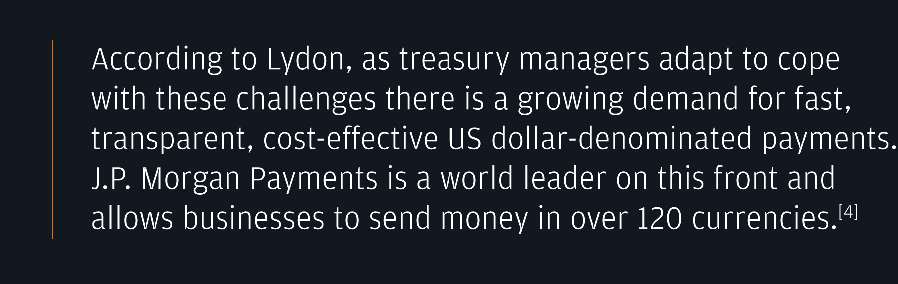 Ultimately, as the needs of treasurers change and technologies emerge to address them, institutions like J.P. Morgan are evolving to help clients navigate local and day-to-day complexities and realize their global and long-term ambitions with value-add solutions.