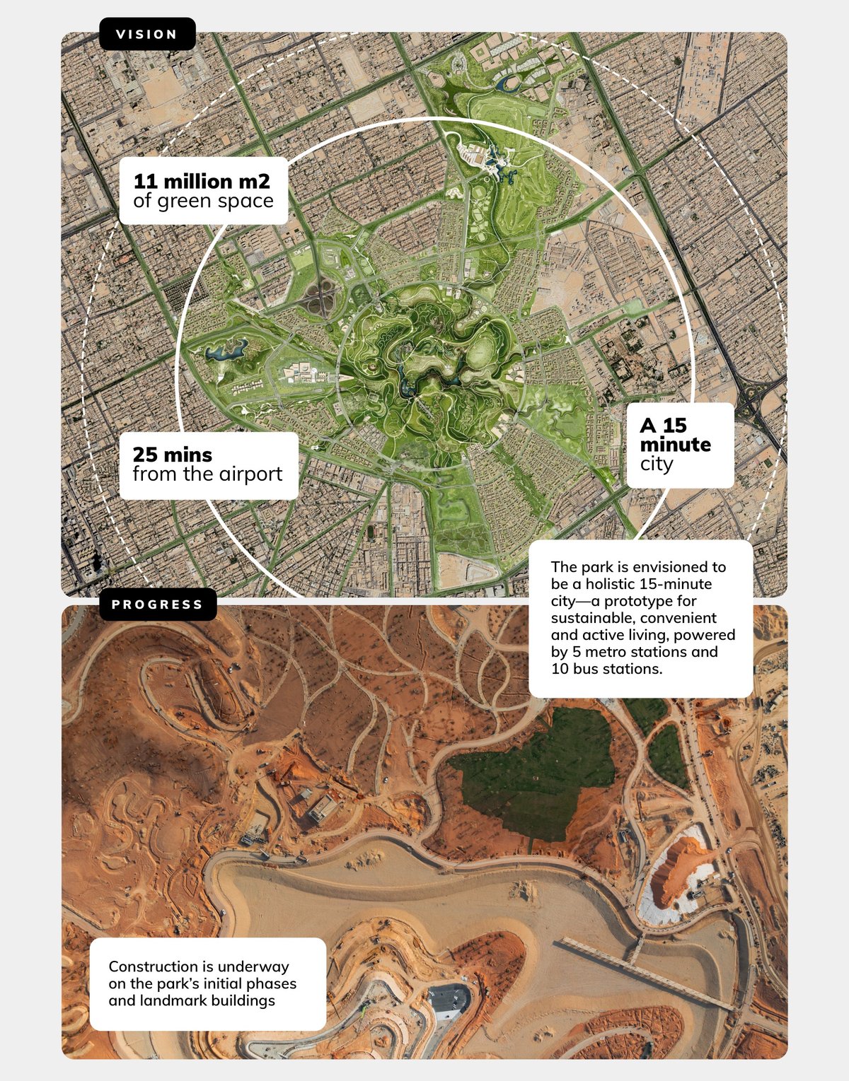 The King Salman Park Foundation, which oversees the park and is chaired by Crown Prince Mohammed bin Salman, has designed the 16.7 square kilometer site as a rich mix of interlinked residential, office, hospitality, retail and entertainment assets.