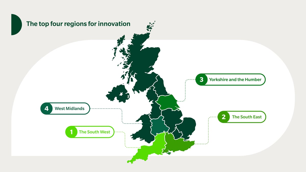 The CBI’s Reviving Regions report, sponsored by Lloyds Bank, tracks a range of economic measures and innovation across England to produce regional scorecards. As well as identifying well-known centres of innovation, such as the West Midlands automotive hub and the South East’s research golden triangle, the report also reveals newer and emerging centres of innovation.
