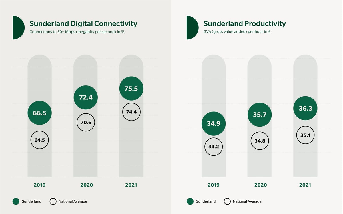The city’s leaders are addressing these issues with a focus on digital connectivity and productivity to help ensure Sunderland’s future success.