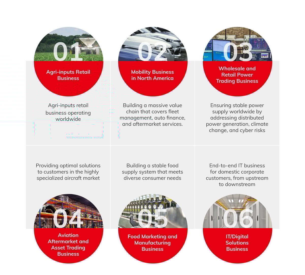 Representative examples of Strategic Platform businesses include Agri-inputs Retail, Mobility Business in North America, Wholesale and Retail Power Trading, Aviation Aftermarket and Asset Trading, Food Marketing and Manufacturing, and IT and Digital Solutions.