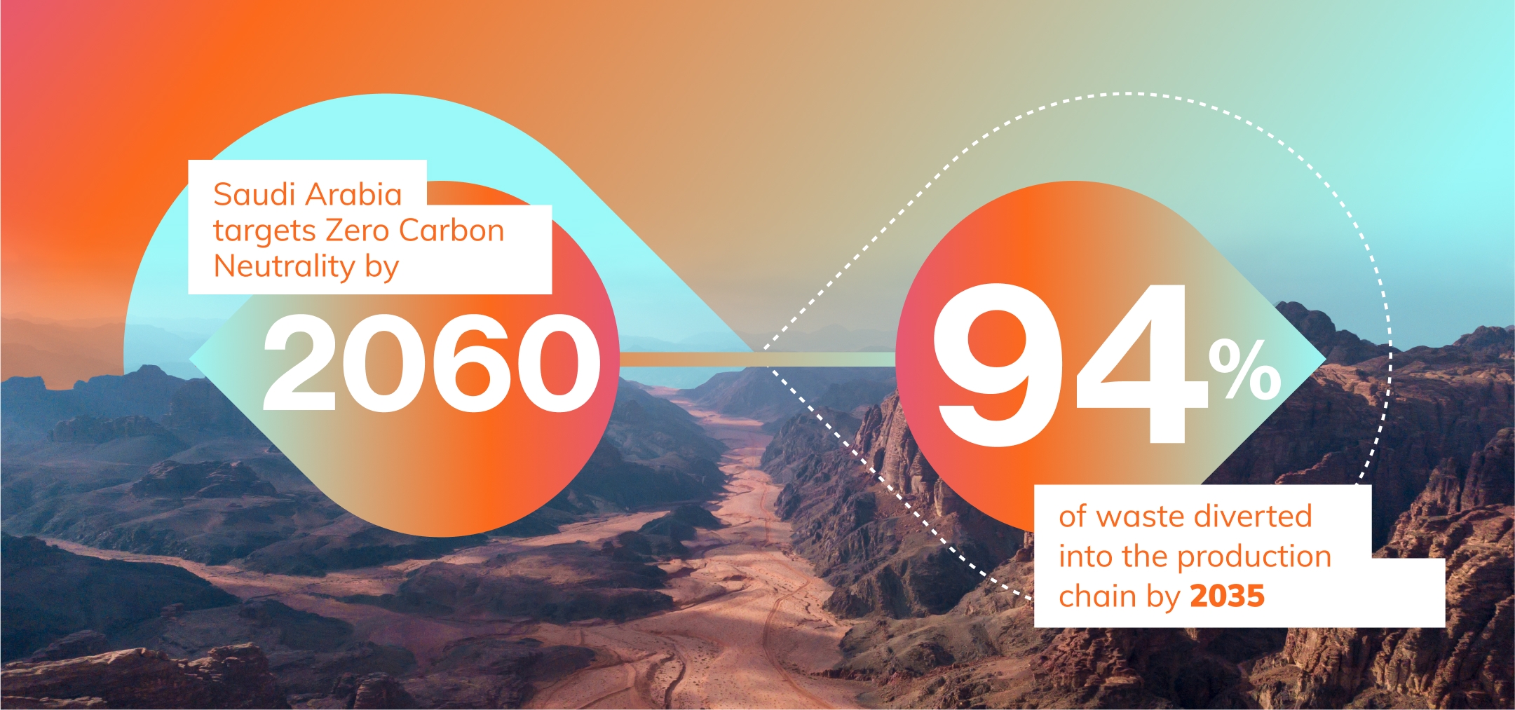 This is in line with Saudi Arabia’s Vision 2030. The kingdom’s environmental target sets the country on track for carbon neutrality by 2060, as well as diverting 94% of waste from landfills to return to the production chain by 2035.